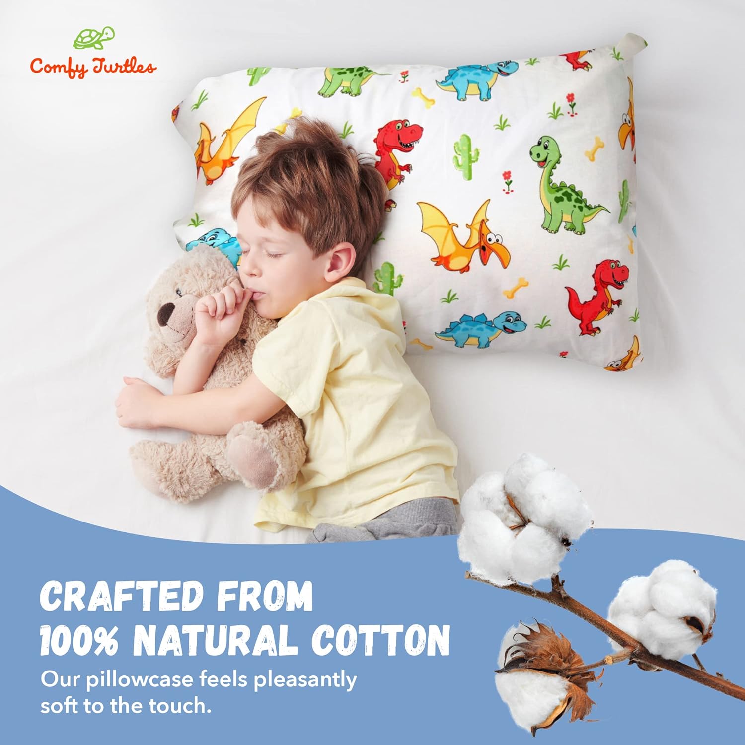 - Soft and Gentle Comfort - Made from 100% breathable cotton, this toddler pillowcase provides a soft and cozy sleep experience for your child. Ideal as a toddler pillow case and dinosaur pillowcase.