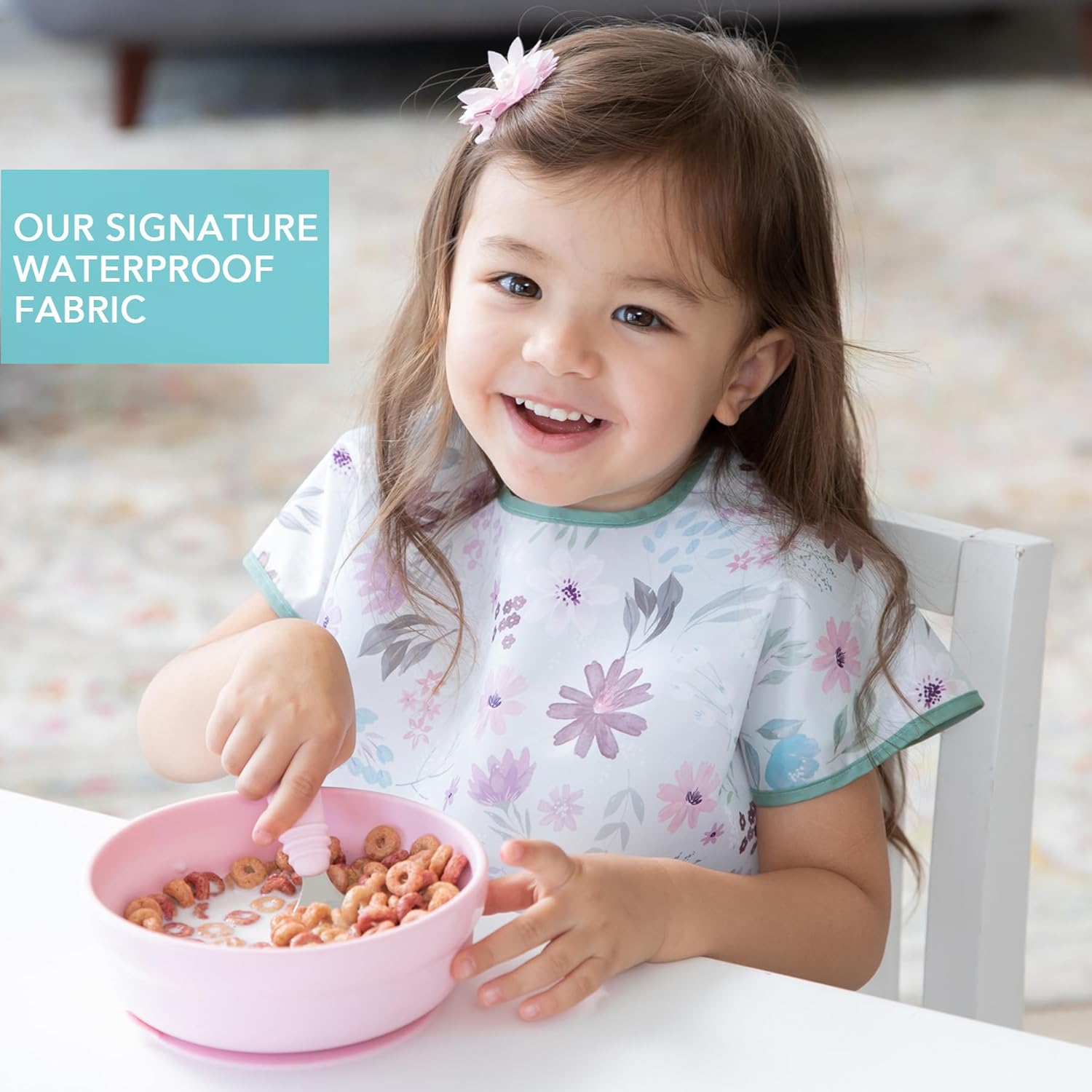 • SOFT YET STRONG – Bumkins signature waterproof fabric is durable and stands up to messes, yet it’s lightweight and comfortable for your little one; wash and reuse over and over again