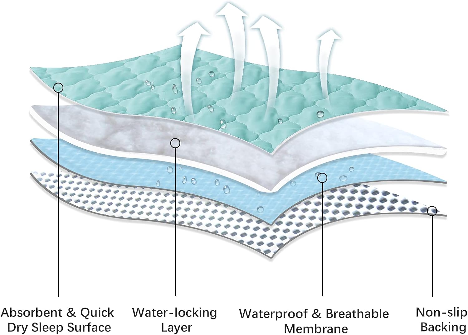 - Absorbent & Waterproof: The waterproof pad will be your best protection to avoid liquids and nighttime accidents, stains or potty training. Bed pad keeps bed dry and super absorbent high density inner layer and lock in moisture.