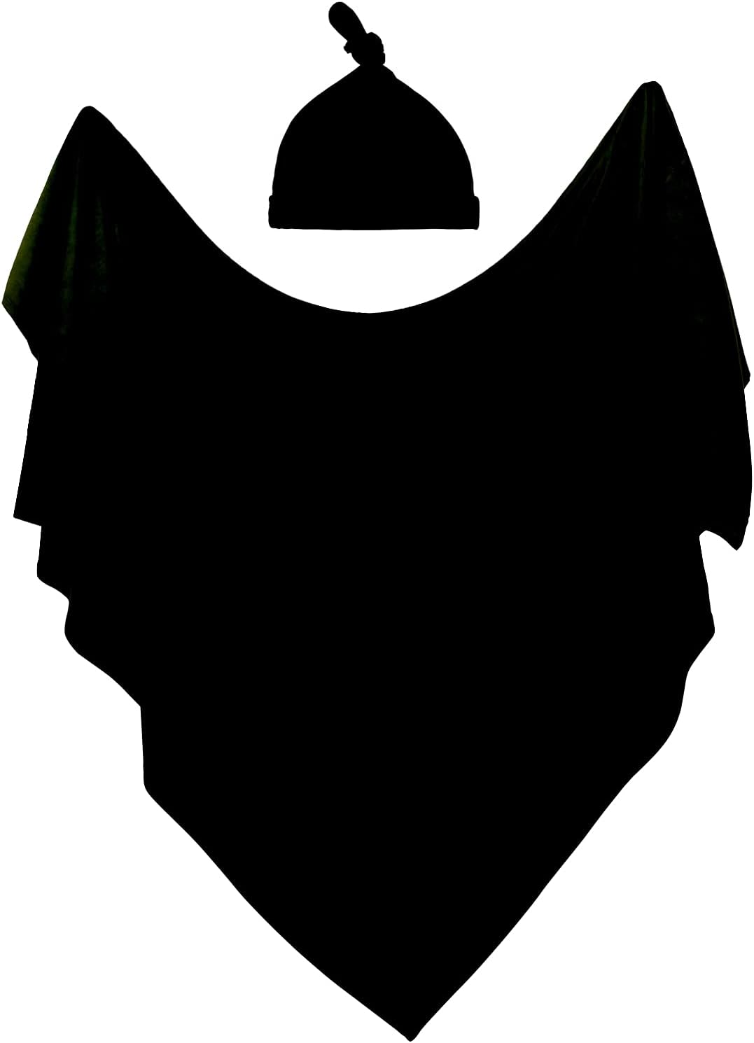 OWLOWLA Swaddle Blanket and Hat Set Newborn Swaddle Wrap Baby Receiving Blanket for Baby Boys Girls(Black)