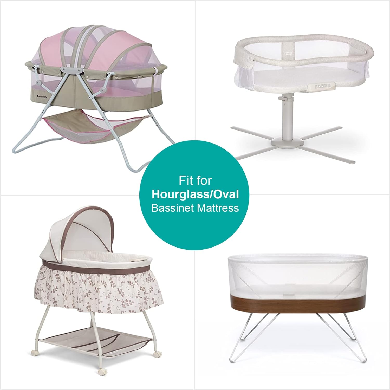 Waterproof Bassinet Sheets Fit for Hourglass, Oval Bassinet Mattress, 100% Cotton Fitted Sheet for Standard Bassinet Mattress, 2 Pack, Ultra Soft for Baby, White