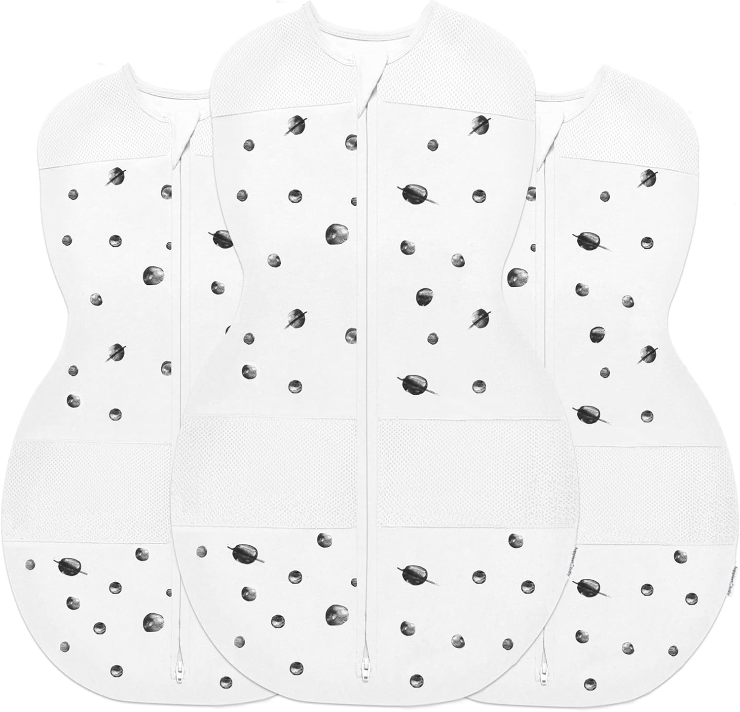 Happiest Baby Sleepea 5-Second Swaddle - 100% Organic Cotton Baby Swaddle Blanket - Doctor Designed Promotes Healthy Hip Development - 3-Pack Newborn Bundle (Ivory Planets, 2 x Small, 1 x Medium)