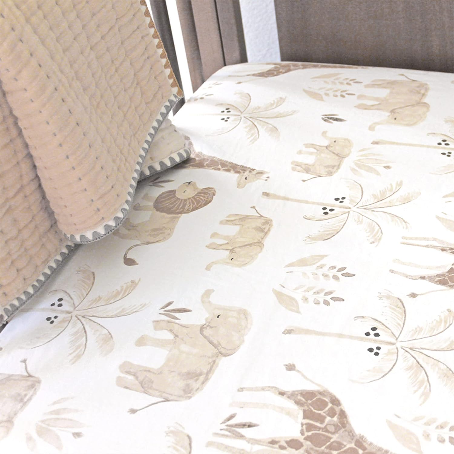 - SAFARI NURSERY: Immerse your baby's nursery in a safari theme nursery decor with our 100% Cotton Sateen fitted crib sheets. Incorporating safari animal nursery decor, these sheets are gentle on your baby's delicate skin, providing a soft and cozy sleeping surface.