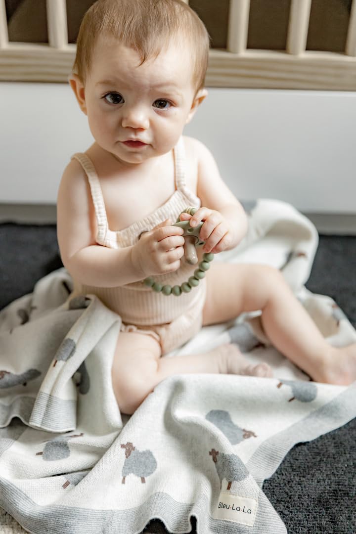Luxury Cotton Knit Swaddle Baby Blanket - Soft Cozy Lightweight Unisex Receiving Swaddler Crib Stroller Quilt Blanket for Shower Gift Registry for Newborns Infants Toddlers (Sheep - Ivory)