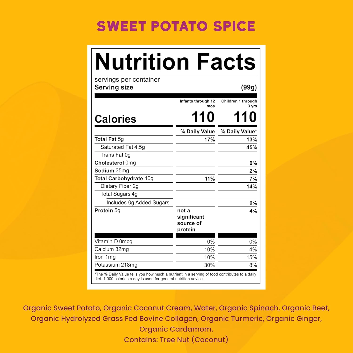 - SWEET & SAVORY FLAVOR: Delight in a smoothie pouch that brings a tasty twist with coconut cream and organic sweet potato. This toddler pouch is crafted to offer more nutrition than your average baby snack, making it a yummy treat for adventurous taste buds