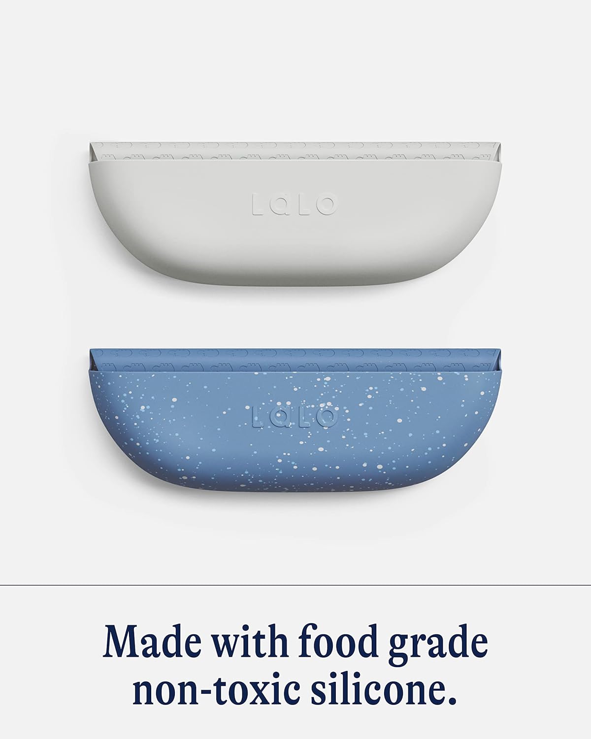 Lalo The Bib - Waterproof, Non-Toxic Silicone Baby Bib with Adjustable Neck Band & Silicone Food Pouch Catcher, Set of 2