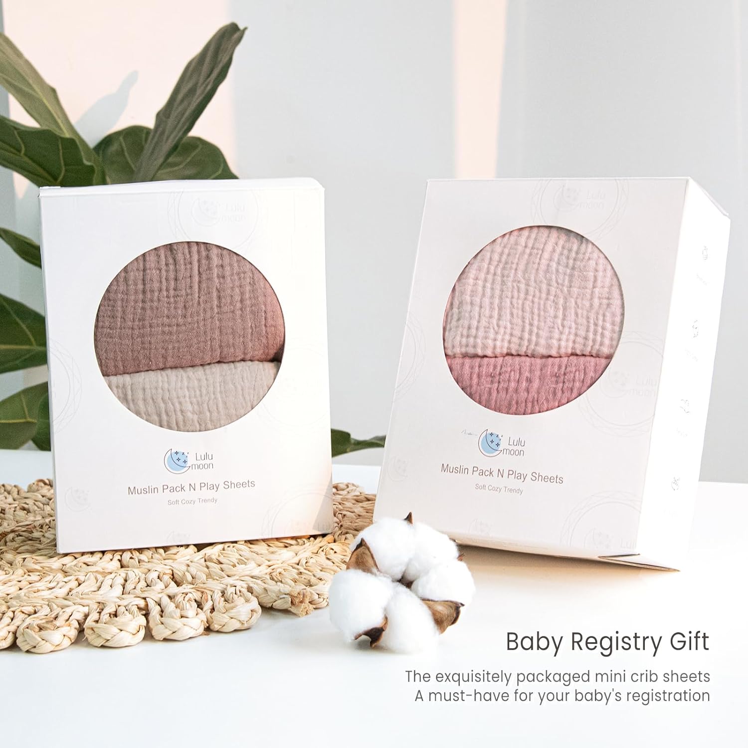 lulumoon Mini Crib Sheets Muslin: Soft Cotton Fitted Mini Crib Mattress Sheets for Boys and Girls 2Pack