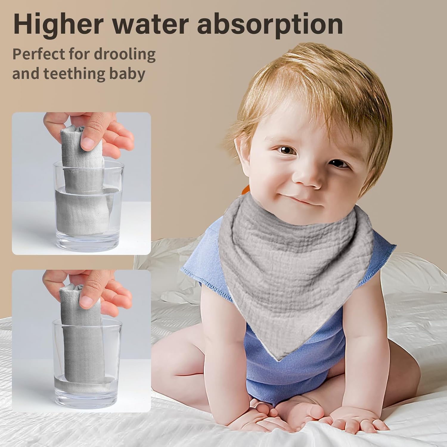 Muslin Baby Bibs,Soft Triangular Baby Bandana Drool Bibs for Baby Boy Girl,Solid Colors Bib for Drooling Teething