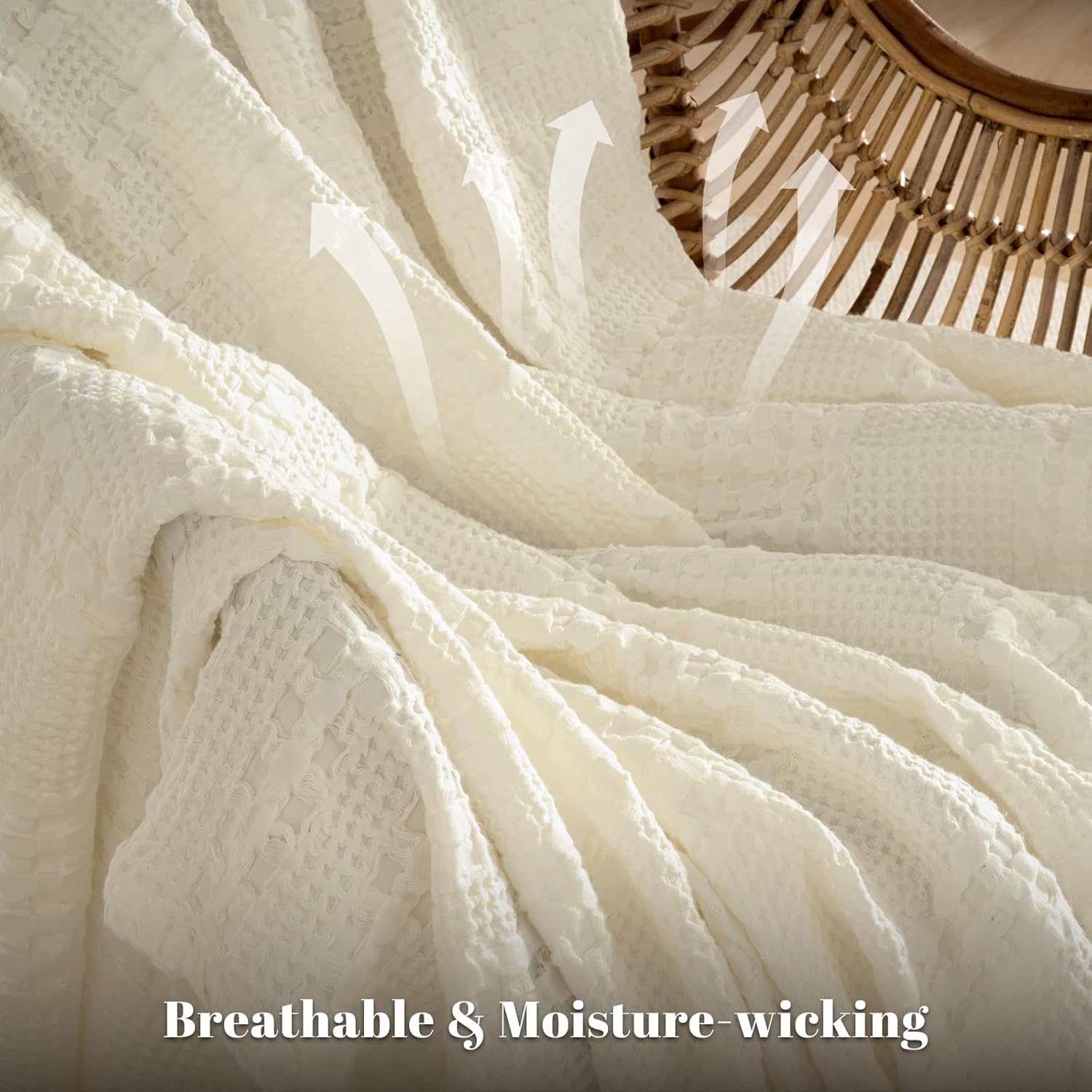 - Exquisite Waffle Weave Design: Classic yet stylish waffle design features three-dimensional, puffy and elegant appearance, along with exquisite complex woven craftsmanship brings thus extra sophistication and create a soothing retreat for perfect home decor. Meanwhile the special waffle weave helps with air circulation and enhance the breathbility of the blanket.