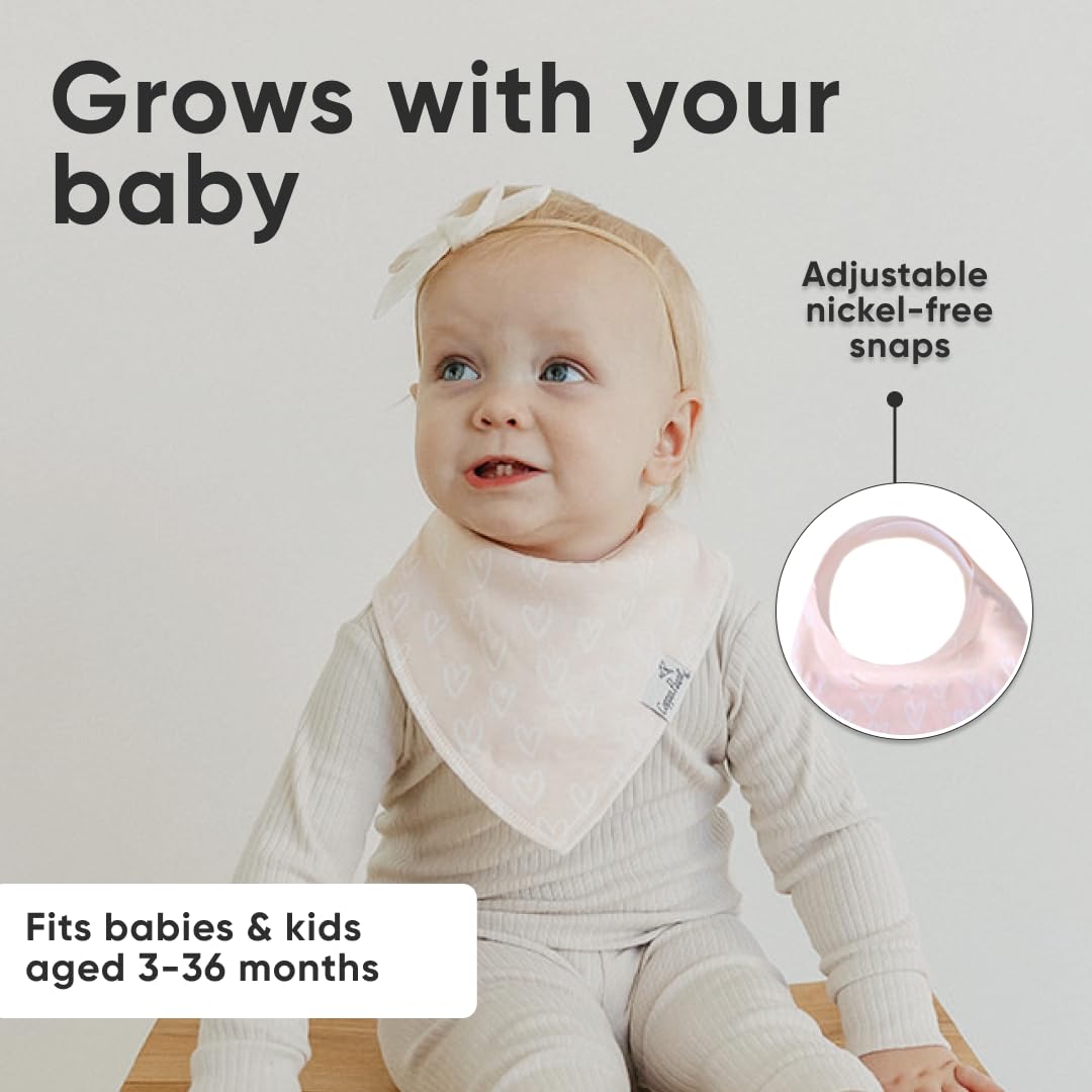 - GROWS WITH YOUR BABY: Each bib features two adjustable nickel-free snaps, allowing for a perfect fit from newborn through toddlerhood (3–36 months).