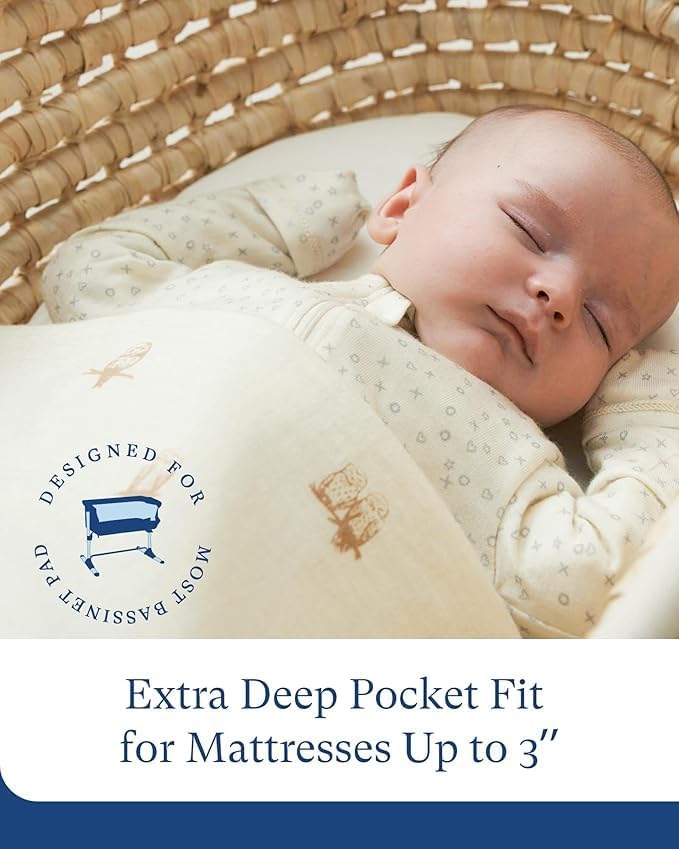 - UNIVERSAL SIZE: Features deep 5'' pockets and durable 360Β° elastic stitching the entire way around to ensure a perfect fit on all standard bassinet pad and moses basket oval rectangle pad mattress bedside sleeper.