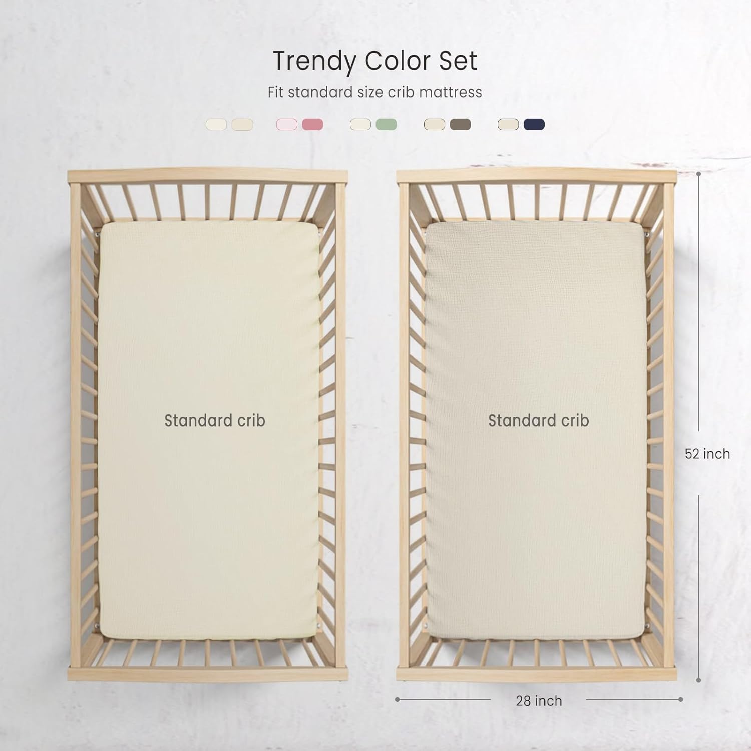 - MUSLIN COTTON - Our crib sheets are made of 100% muslin cotton.The soft and breathable material won't irritate baby's delicate skin and allows your baby to get comfort.