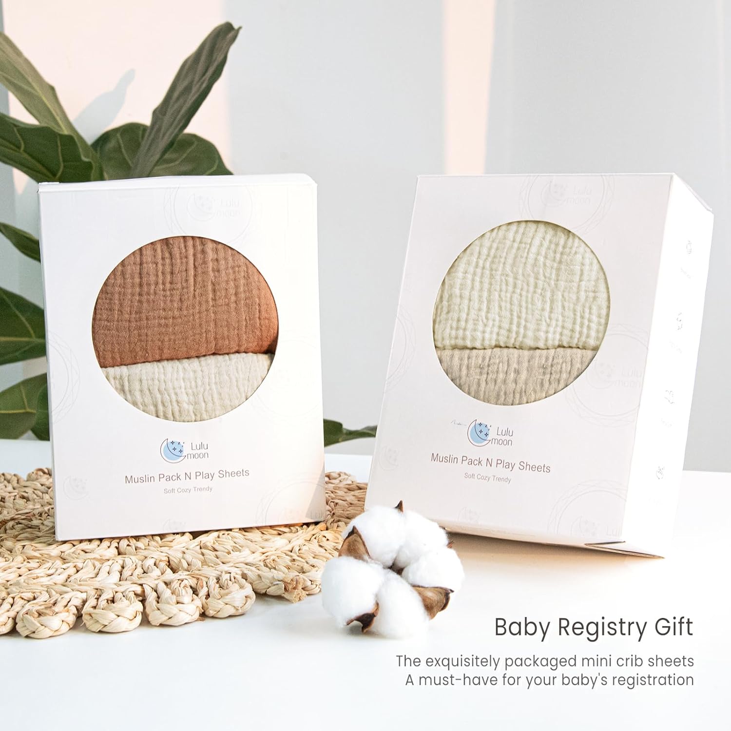lulumoon Mini Crib Sheets Muslin: Soft Cotton Fitted Mini Crib Mattress Sheets for Boys and Girls 2Pack