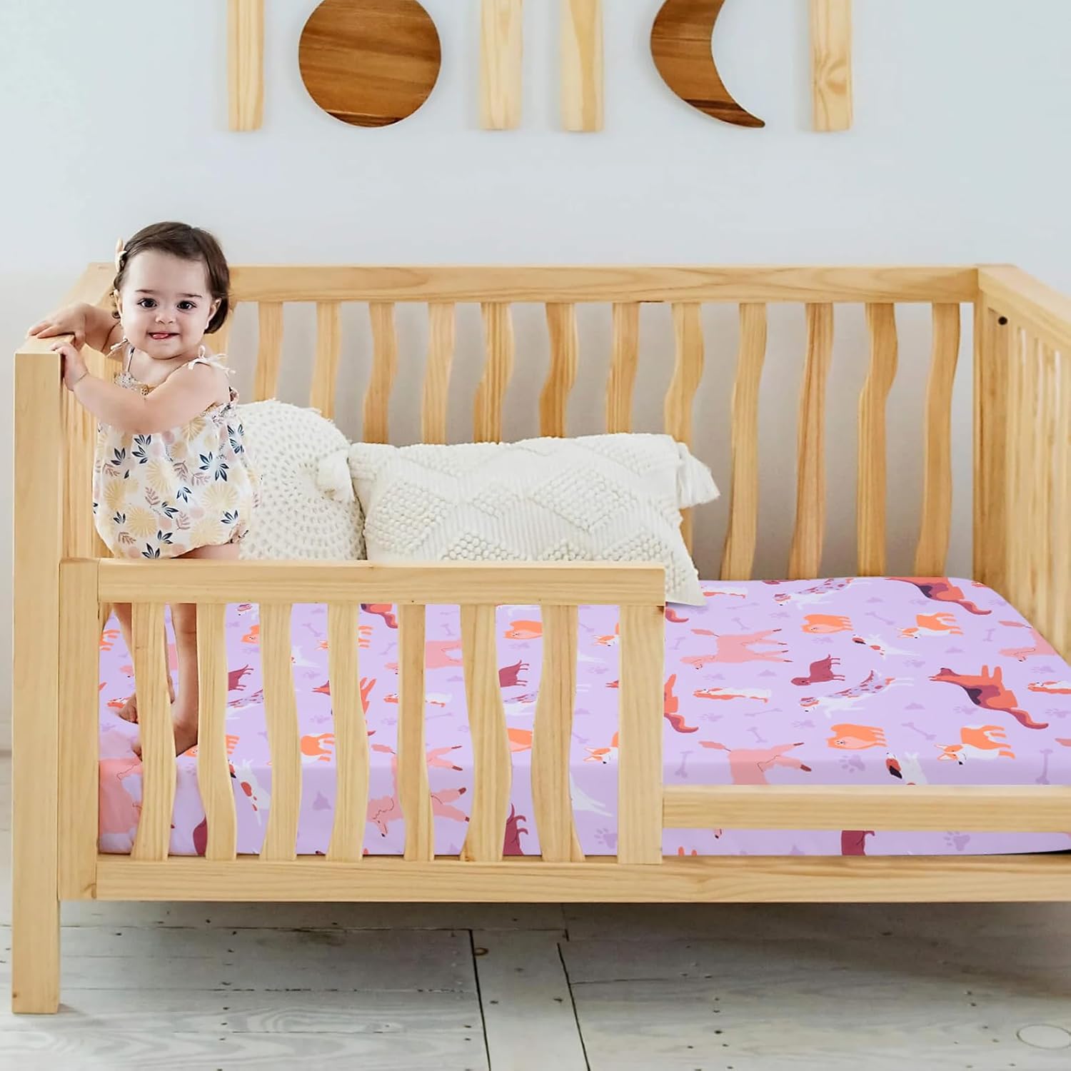 UOMNY Crib Sheet 52x28 Baby Sheet for Girls Breathable Dog Fitted Crib Sheet for Standard Crib and Toddler Mattress Soft Toddler Sheet Purple