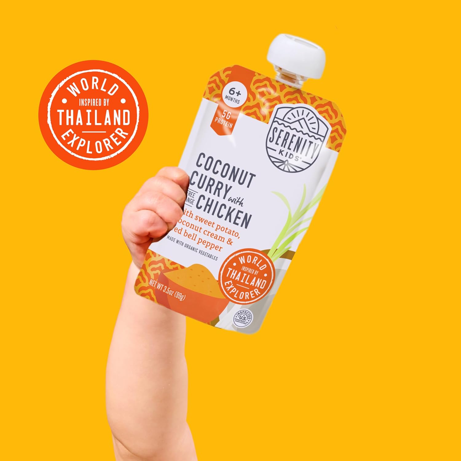 - Crafted With Care: Our coconut curry chicken serenity kids is designed to mimic the nutrients of breast milk, using free-range chicken, organic veggies, and zero artificial flavors. Perfect coconut curry chicken pouch for your 6-month-old baby and beyond