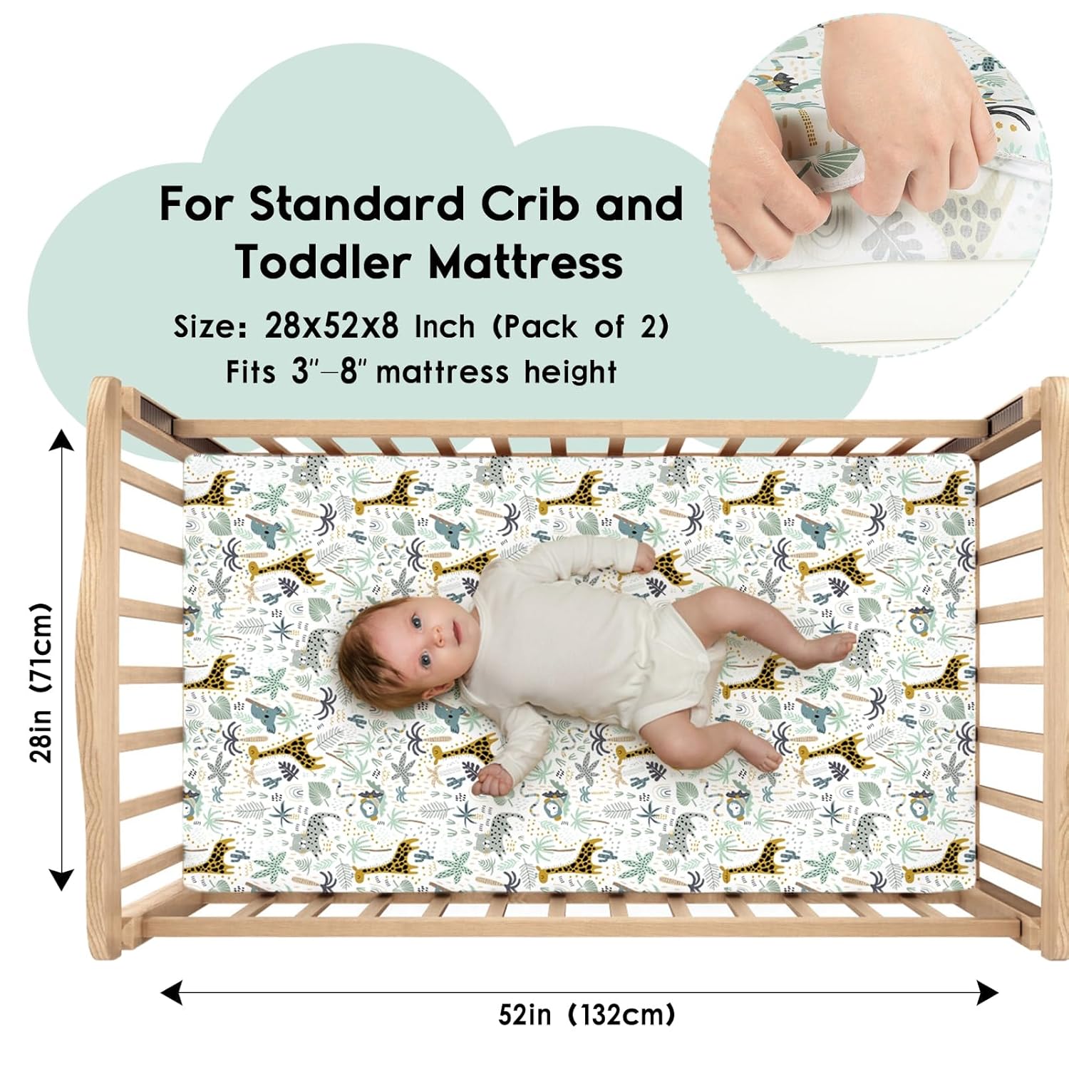 Yoofoss Baby Crib Sheets for Boys Girls, Fitted Crib Sheet 2 Pack for Standard Crib and Toddler Mattress, Super Soft Microfiber Baby Sheet 28x52x8in Green + Giraffe