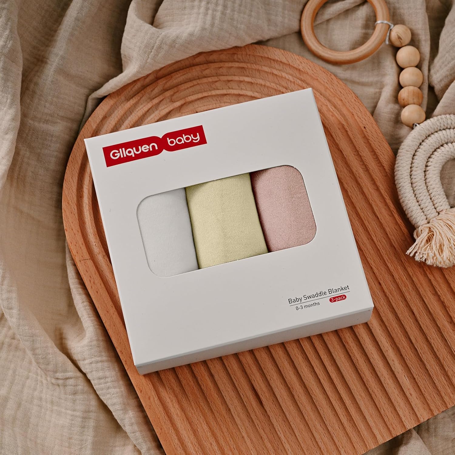 GLLQUEN BABY Swaddle Blankets for Baby Girl & Boy, Easy Adjustable Sleep Sack, Newborn Swaddles for 0-3 Months, Baby Sleep Sack, Pink & Yellow Tone, Swaddling Blankets 3 Pack Wrap Set