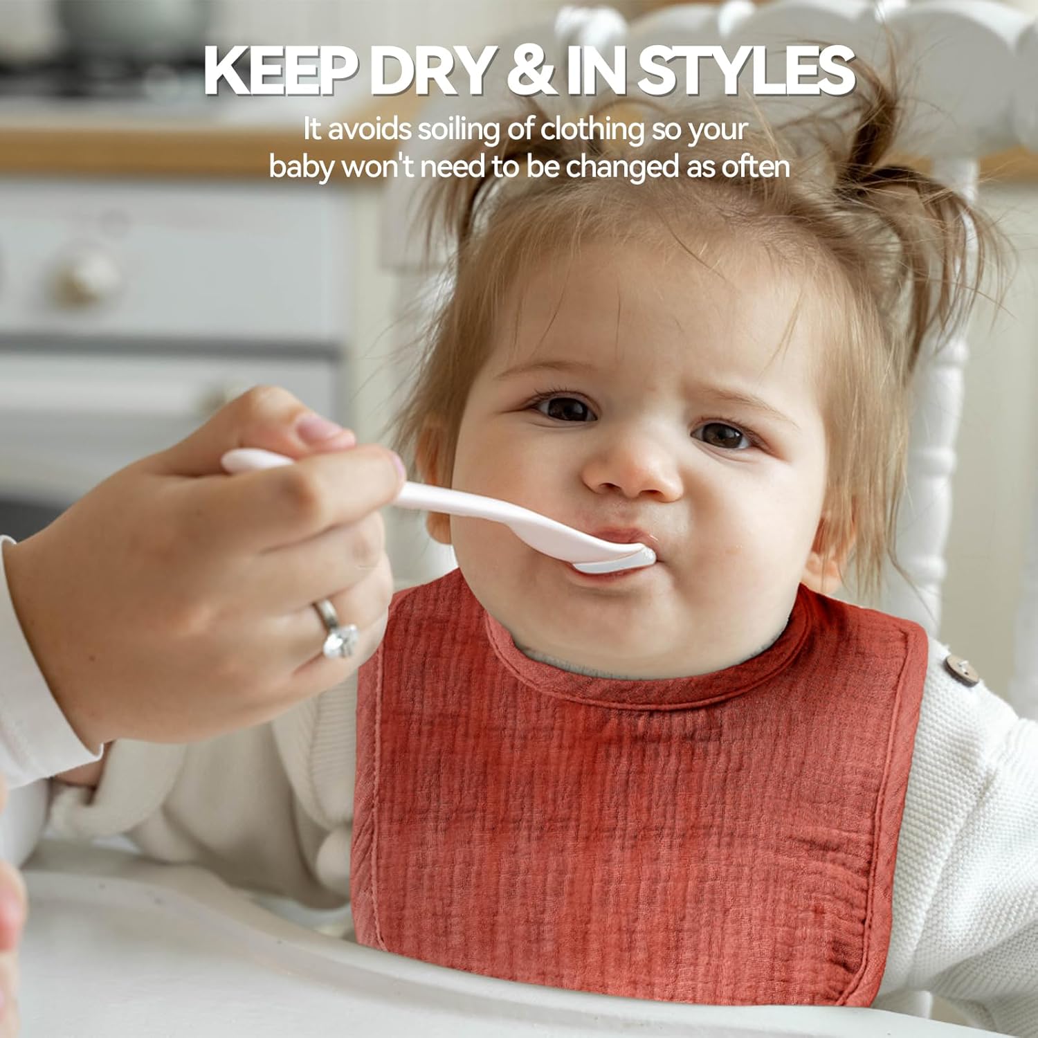 - Set of 6 Unisex Colors: Our toddler muslin bibs for boys and girls are carefully selected neutral colors, suitable for both boys and girls, and can be easily matched with any outfit. You can choose newborn bibs that suit your baby's outfit for the day.
