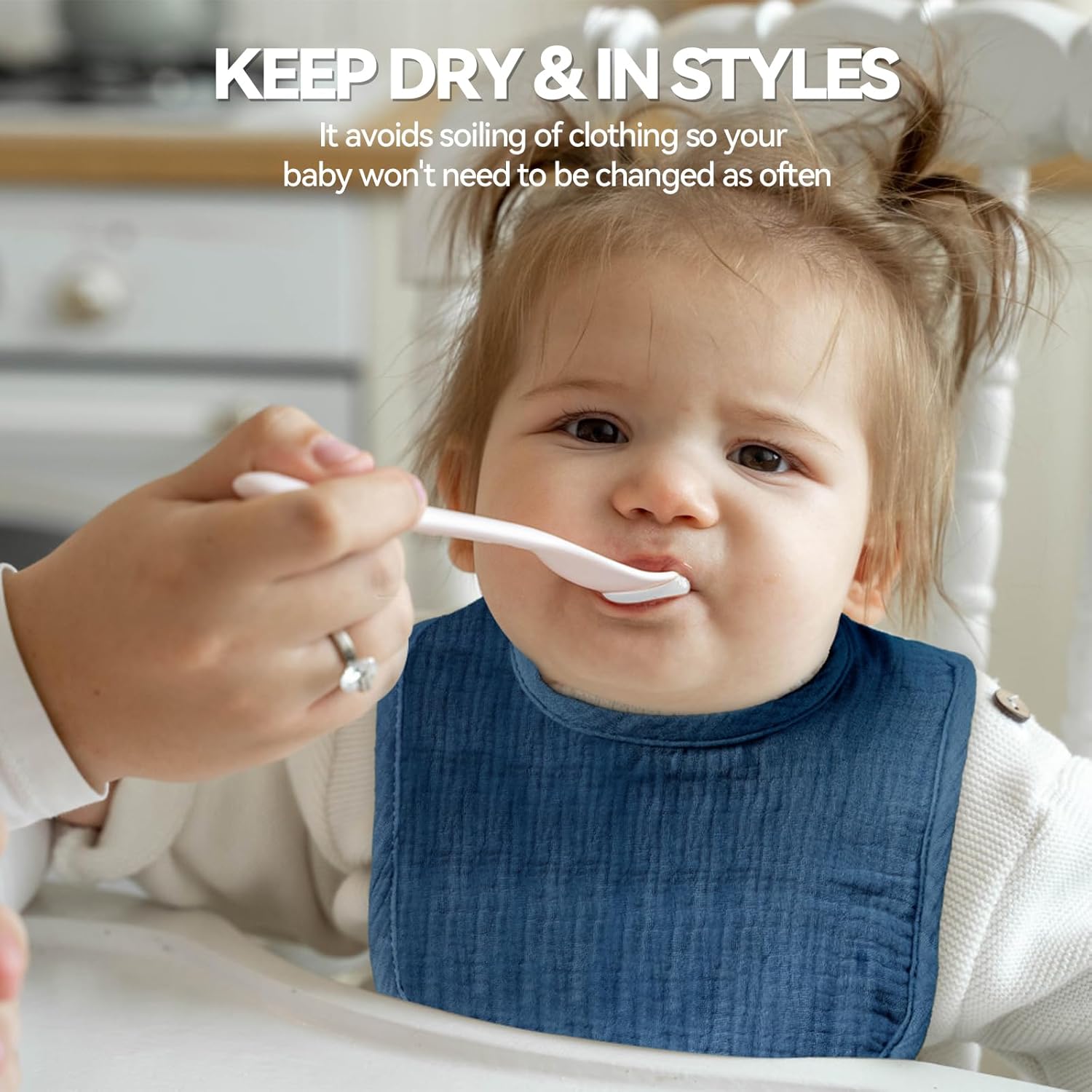 • Multiple Uses: Our cotton muslin baby bibs 0-36 months for drooling and teething are suitable for drooling, feeding, burping, and dealing with spills and messes. They can also be used for bathing and as a face towel. You can even carry them with you as a handkerchief. Natural organic cotton is suitable for all skin types, including sensitive skin.