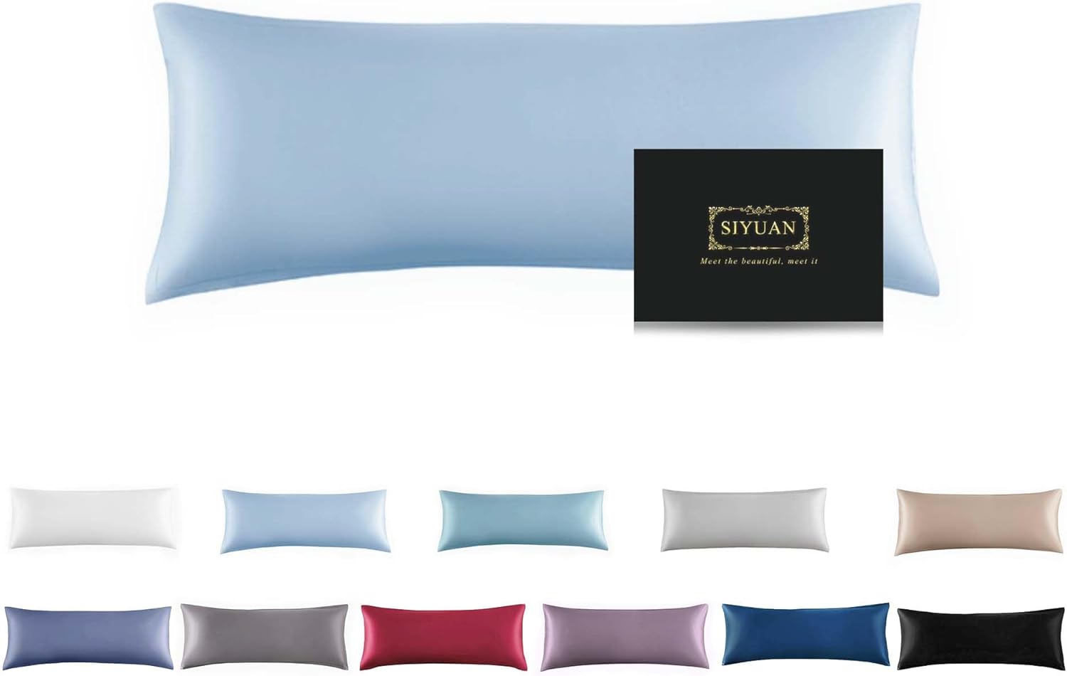 Mulberry Silk Pillowcase for Hair and Skin,Cooling Silk Pillow Case with Hidden Zipper,Allergen Proof Dual Sides Soft Breathable Smooth Silk Pillow Cover for Women (Light Blue,Body)
