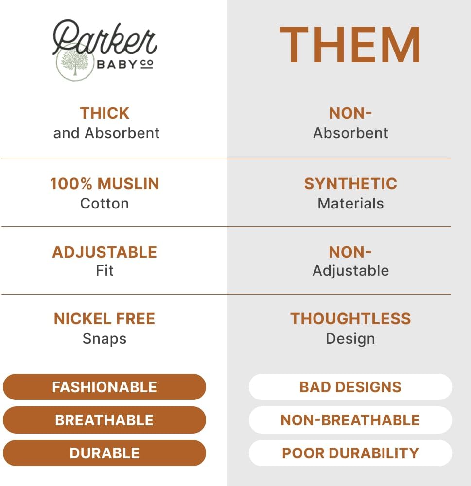 Parker Baby Muslin Bandana Drool Bibs | 100% Soft Muslin Cotton, Absorbent & Adjustable | Stylish Teething & Drooling Bibs