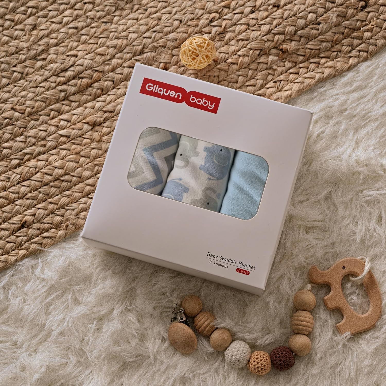 GLLQUEN BABY Swaddle Sleep Sack - 3 Pack Infant Swaddles for Newborn, Baby Swaddling Sack 0-3 Months, Ergonomic Newborn Swaddle Blanket for Baby Boy and Girl, Blue & Elephants