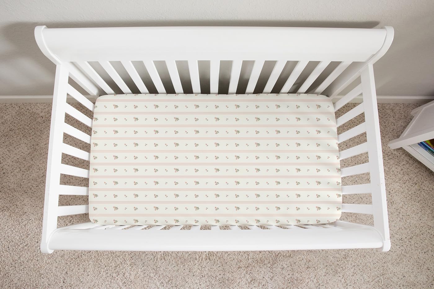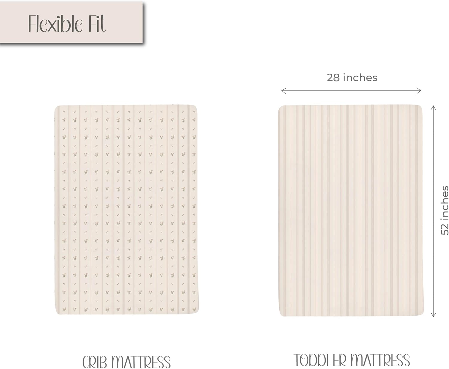 - Linear Floral Design: Elevate your baby’s nursery with the Ely’s & Co. Fitted Crib Sheet Set– a premium 2 pack of baby fitted crib sheets crafted from 100% jersey cotton. This set features a soft ivory base with a Linear Floral and Stripe Print, adding a touch of antique charm to the sleep environment.