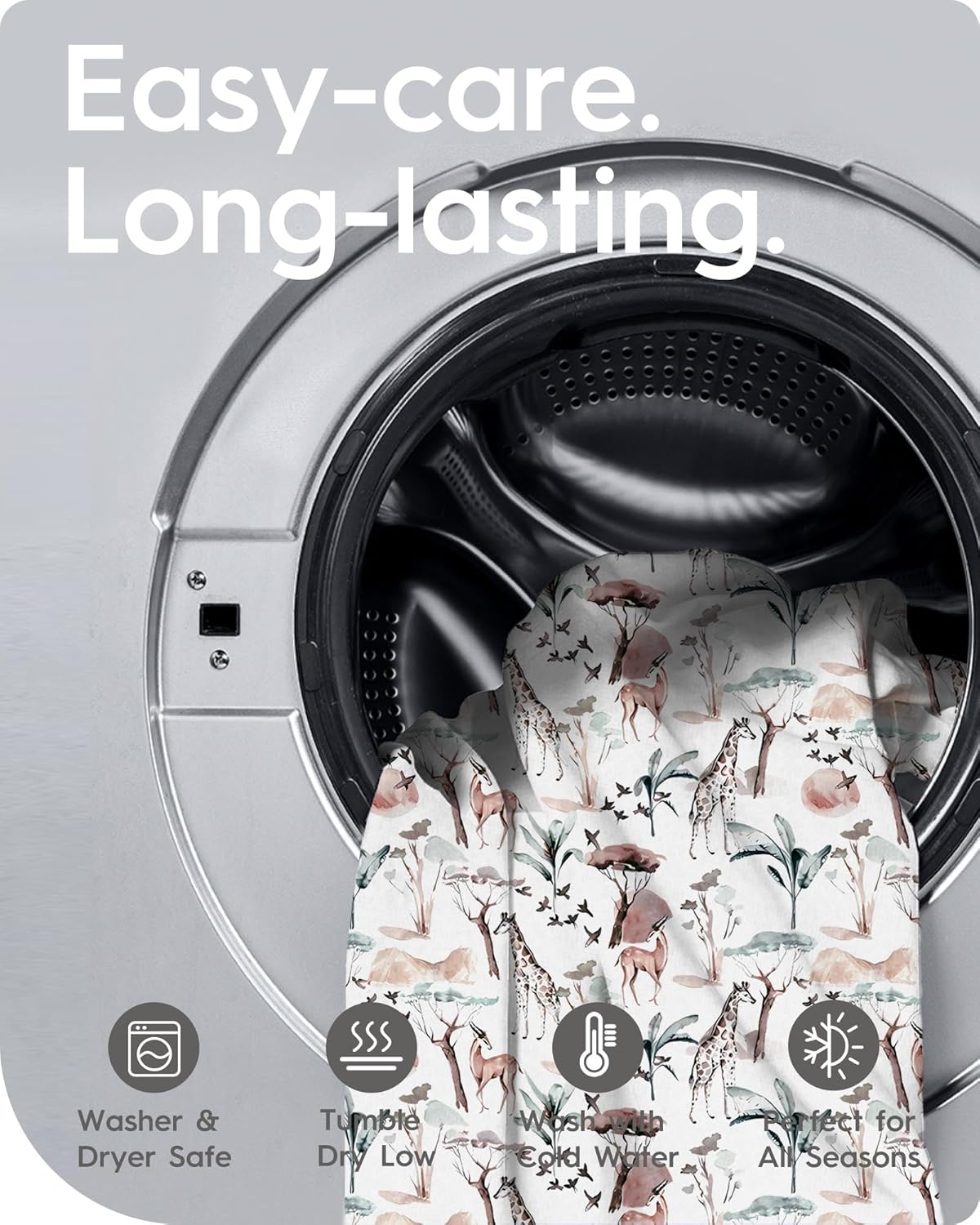 - EASY CARE: Our crib sheets are built to withstand the demands of daily use and countless washings. Simply toss them in the machine, tumble dry, and they will retain their softness, stretchiness, and adorable patterns.