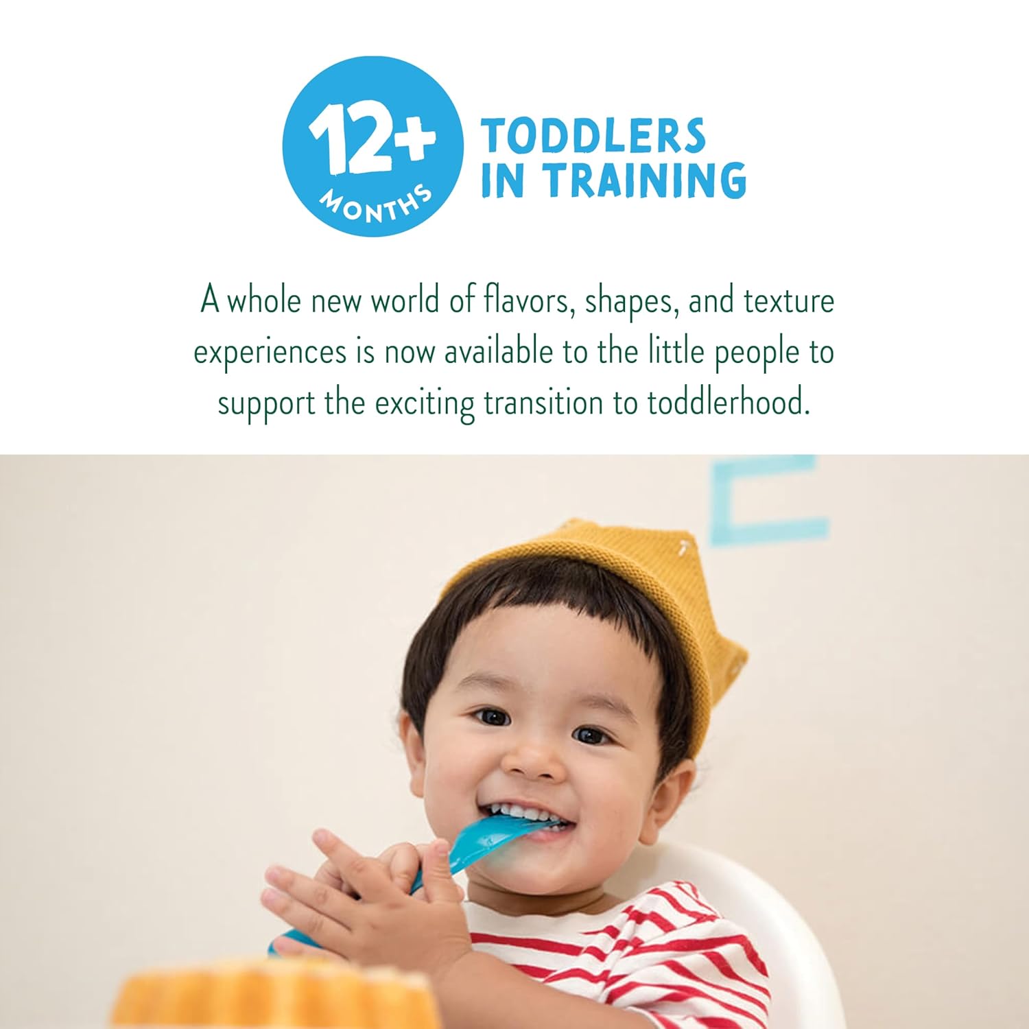 - Age and stage appropriate β We carefully consider nutritional requirements, flavors, shapes and textures for every age and stage to support independent self-feeding and aid motor skill progression.