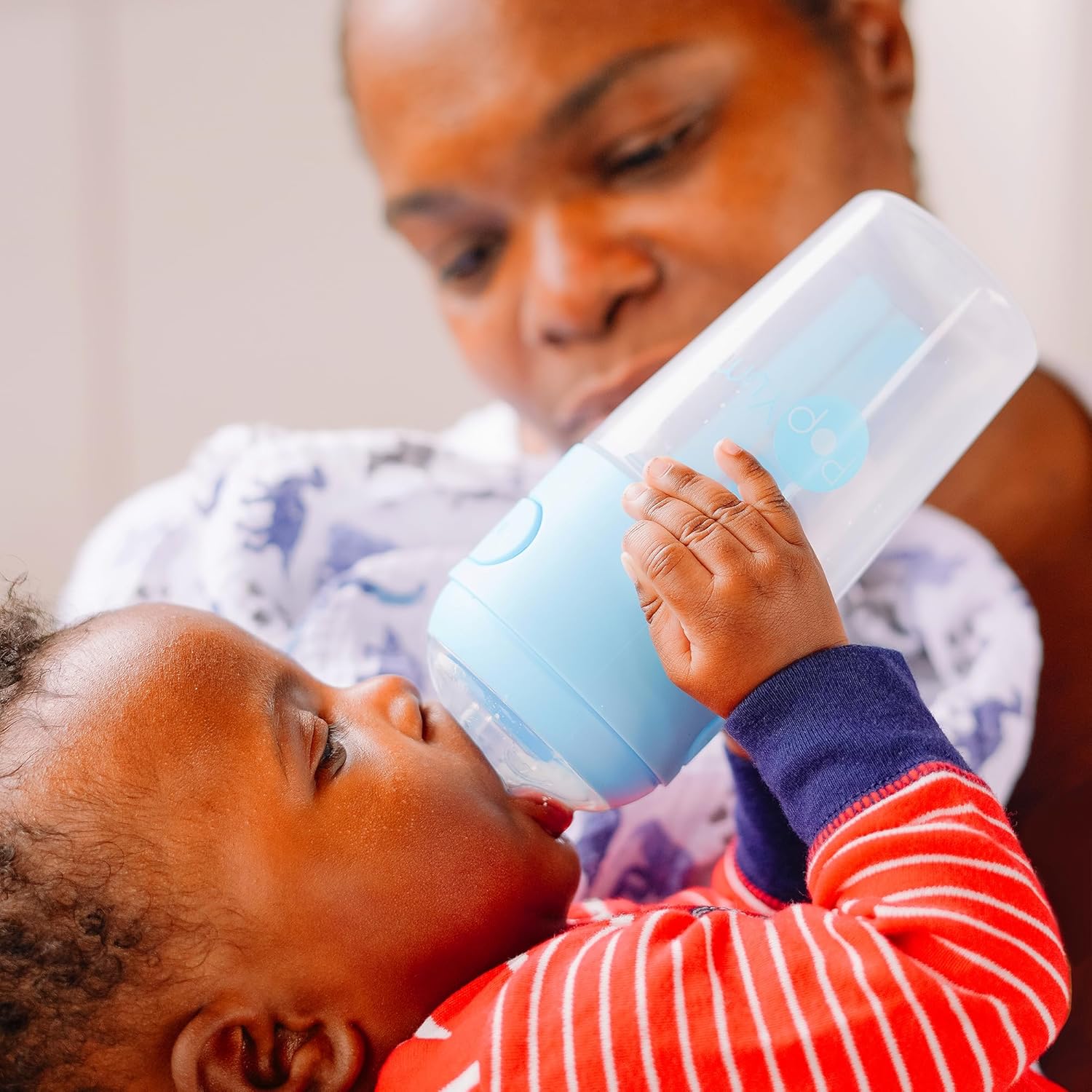 PopYum Blue Formula Making Baby Bottle Starter Set, 4-Pack, 2X 5oz Bottles with #1 Slow Flow Nipples + 2X 9oz Bottles with #2 Medium Flow Nipples, Mixing, Dispenser