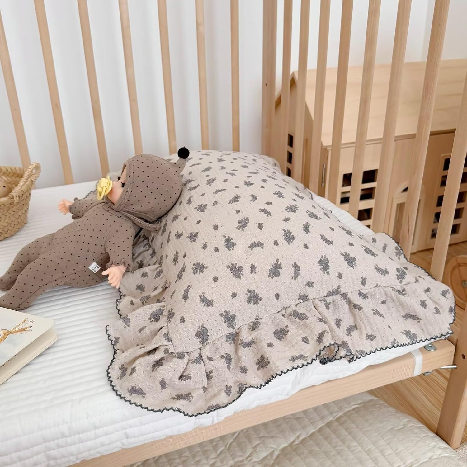 - 【Cute Pattern】 Cotton muslin toddler kids pillow covers designed with blue orchid flower & dots patterns and ruffles on the edges. The chic shabby style is suitable for both girls and boys.【Please understand this is just pillow cover, the pillow insert/filling NOT included.】