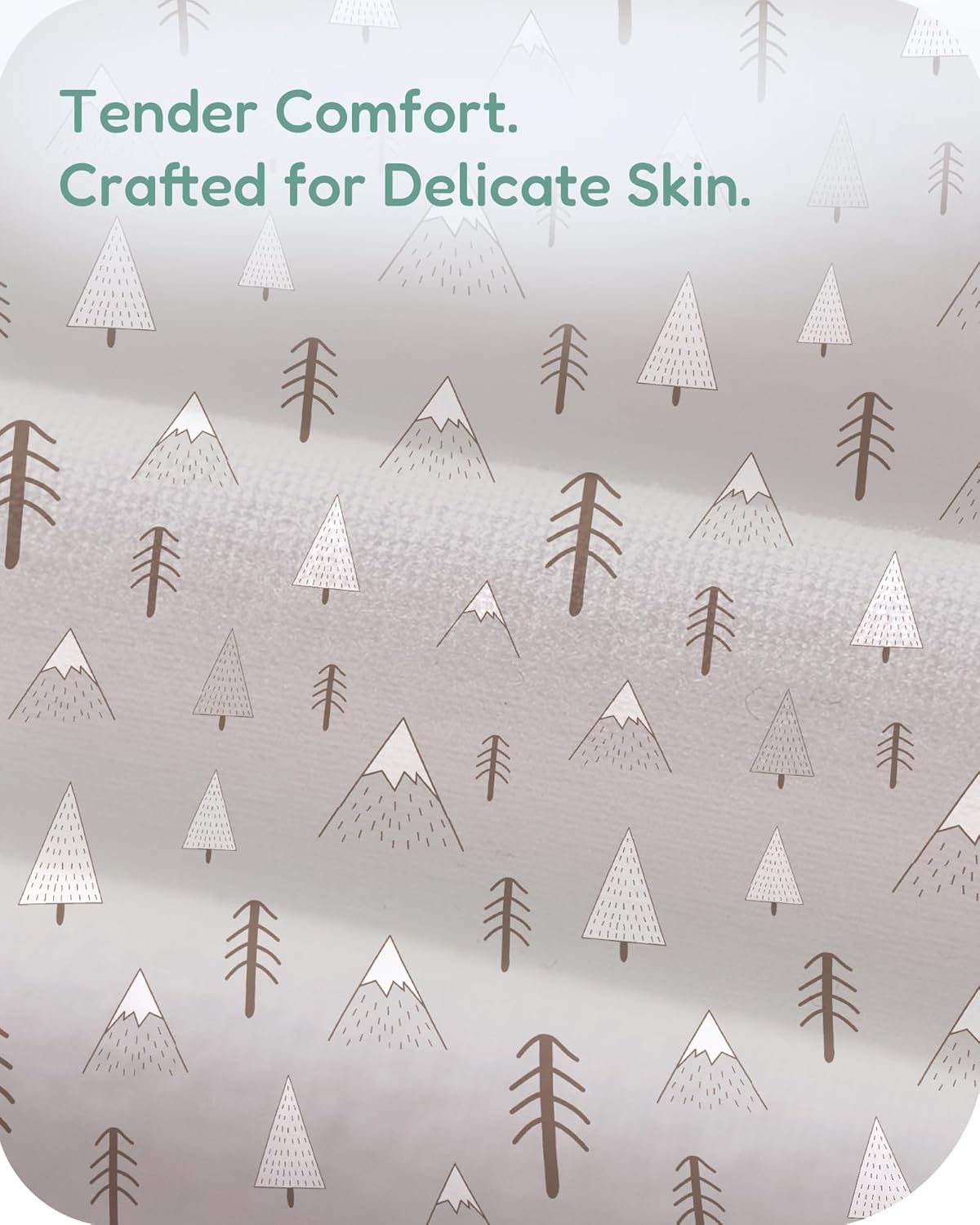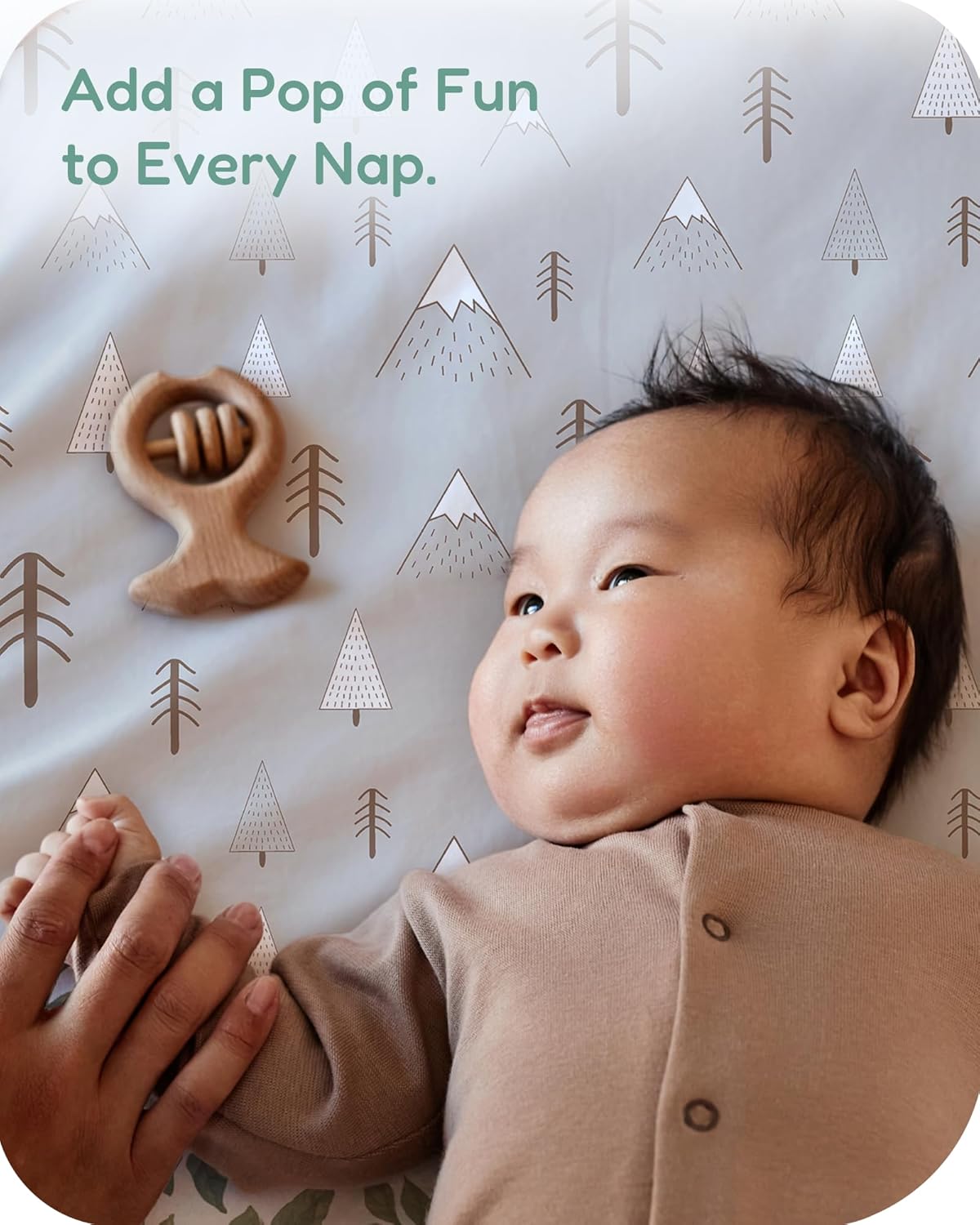 - Premium Softness & Comfort: Crafted from high-quality polyester, these mini crib sheets fitted are buttery soft, breathable, and temperature-regulating, keeping your baby cozy throughout every season. The gentle stretch ensures a snug fit, while the fabric remains airy yet warm for all-day comfort.