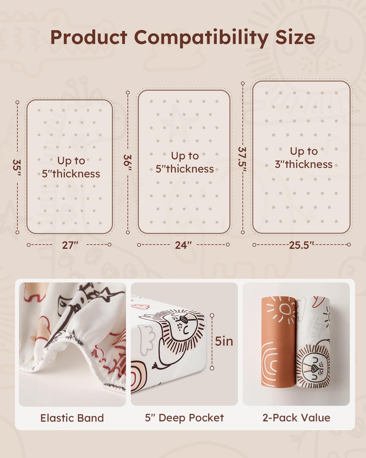 - Snug Fit and Secure: Measuring 38"x26", Yoofoss mini crib sheets are designed to snugly fit most Pack n Play or potable playard mattress.The 3β5 inch deep pocket provides full coverage that wraps around the mattress to keep the sheet neatly in place, ensuring a safe and comfortable sleep for your baby.