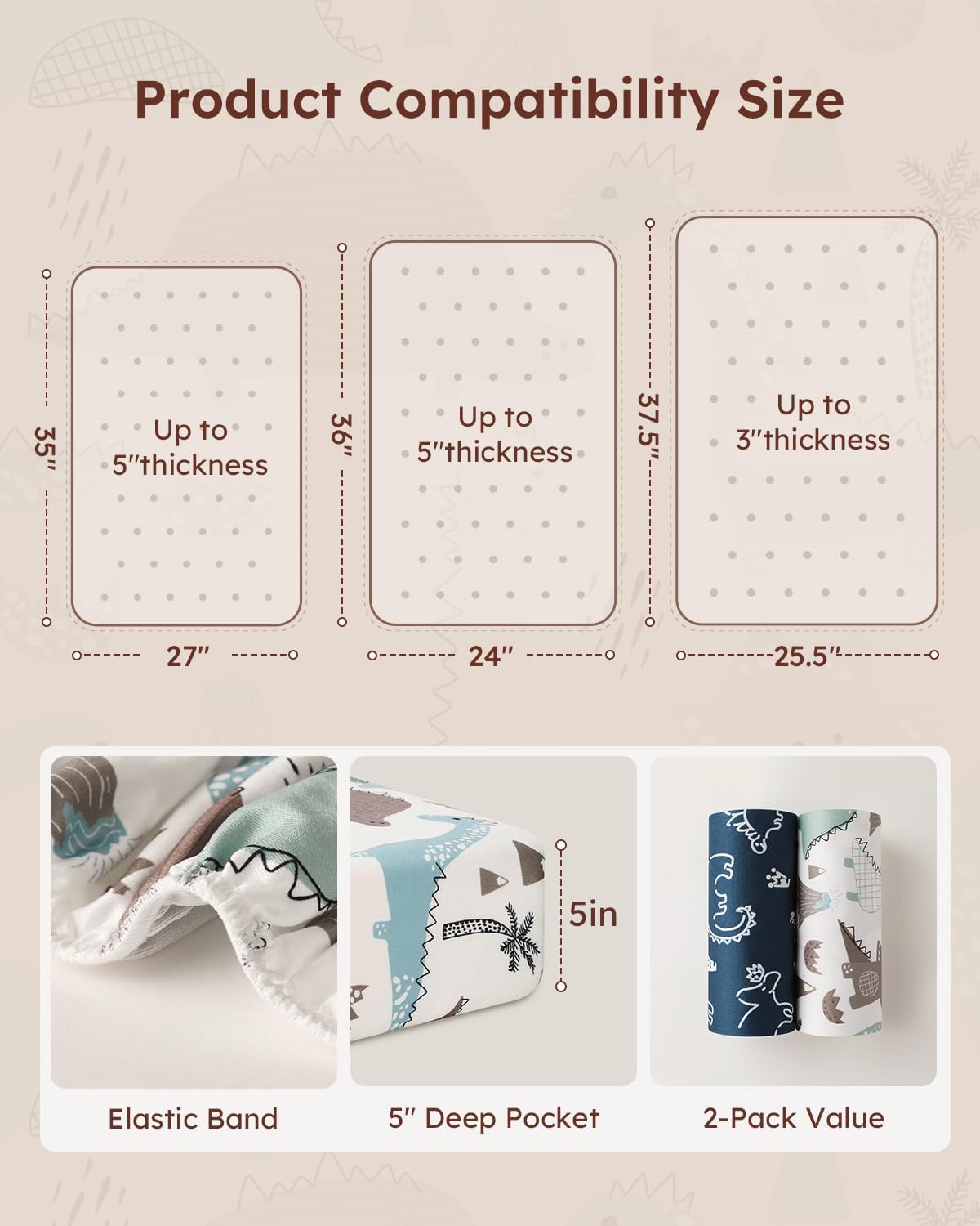 - Snug Fit and Secure: Measuring 38"x26", Yoofoss mini crib sheets are designed to snugly fit most Pack n Play or potable playard mattress.The 3β5 inch deep pocket provides full coverage that wraps around the mattress to keep the sheet neatly in place, ensuring a safe and comfortable sleep for your baby.