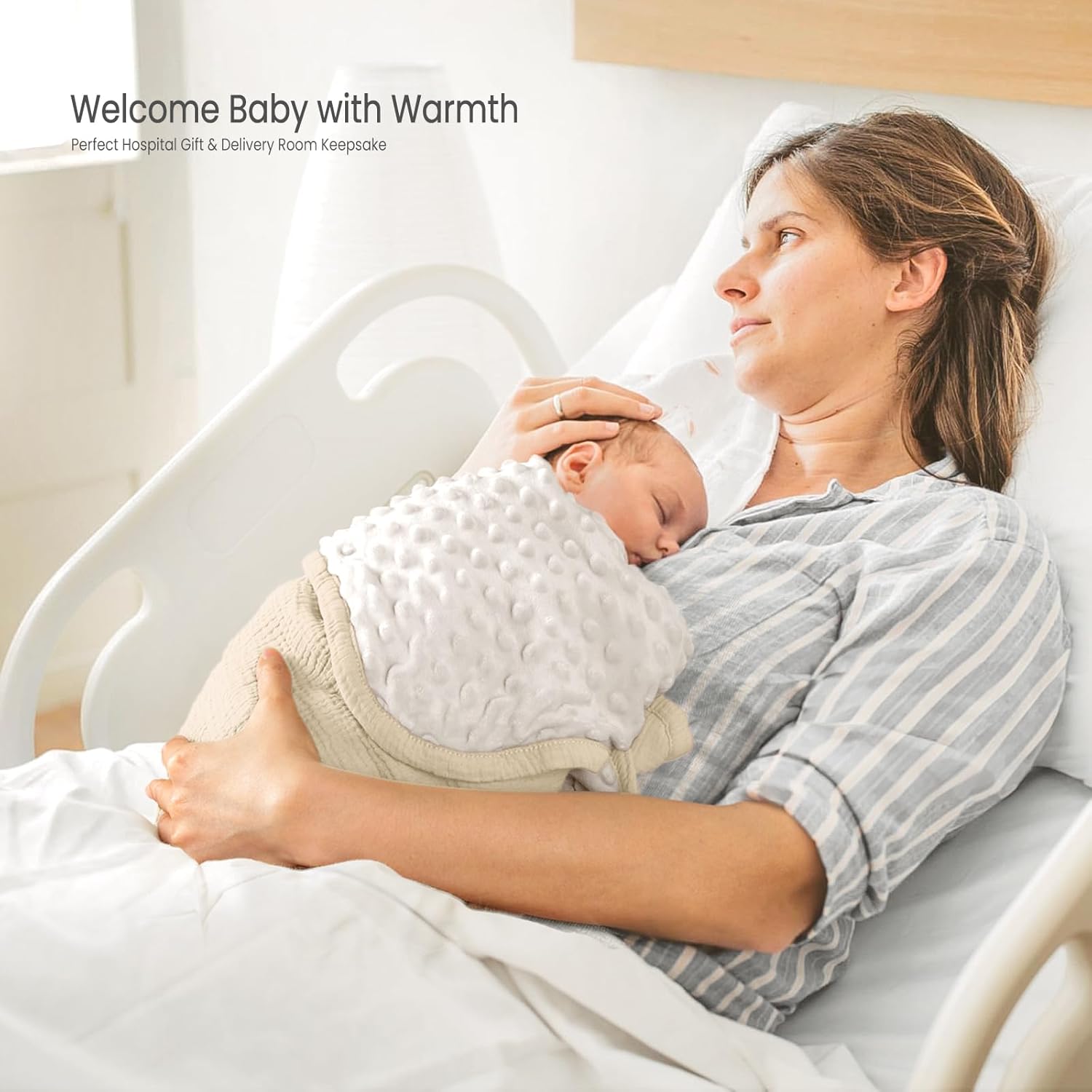 lulumoon Baby Blanket for Newborn Receiving: Minky Dot & Muslin Lightweight - Thermal Blanket Gift for Baby Shower & Hospital Welcoming 30"x40"(Ivory)