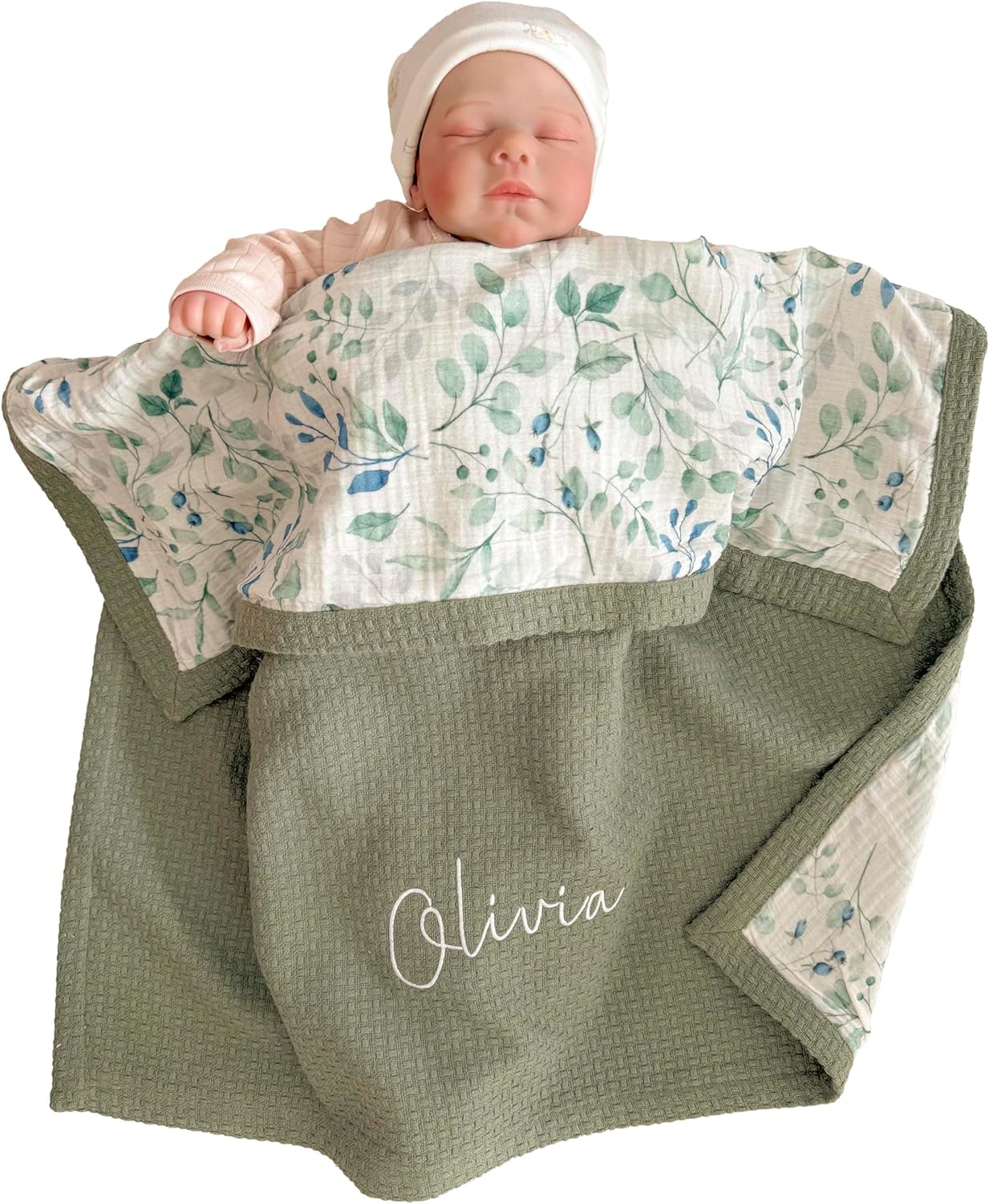 - VERSATILE & MULTI-PURPOSE BLANKET - The organic swaddle blanket can be used in many different ways; this personalized baby wrap serves as a swaddle, stroller cover, nursing cover, or play mat, making this personalized baby gift a versatile newborn essential for all parents.