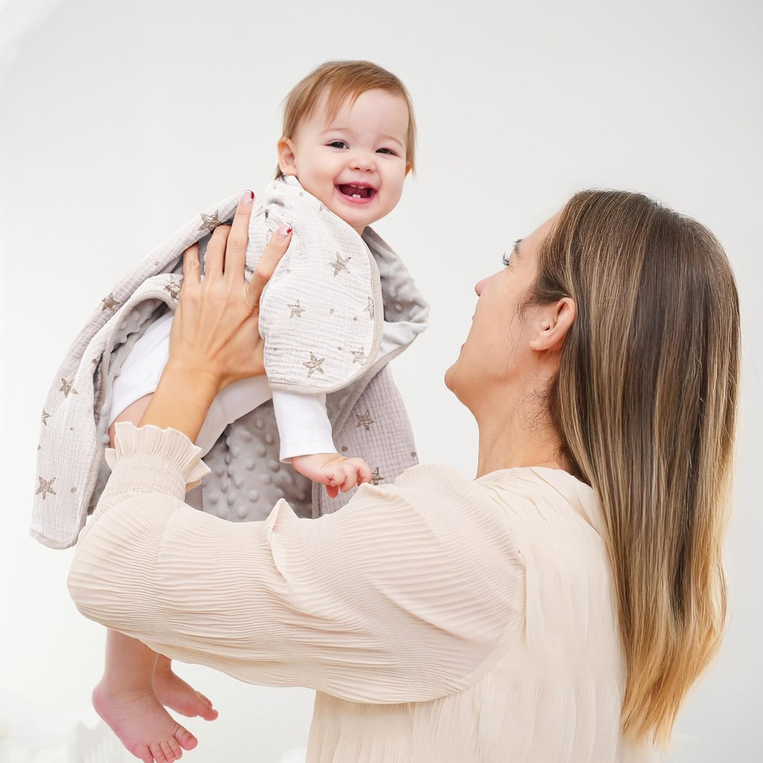 - Premium Material: Our baby blankets for unisex boys and girls are made from 100% muslin cotton on the front and ultra-soft dot fleece fabric on the back. This combination ensures warmth and comfort, making it gentle on your baby's sensitive skin. Perfect for all seasons, this muslin baby blanket creates a cozy environment for your little one to sleep soundly.