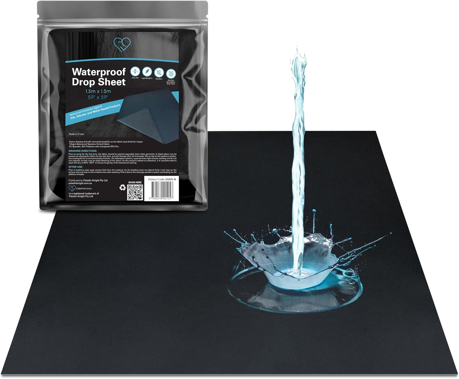 Black Waterproof Flat Drop Sheet (59”x59”), Mattress Topper, Protector Cover, Safe with Oil, Water-Based, & Silicone-Based Massage Products, Hypoallergenic, Noiseless, Machine Washable