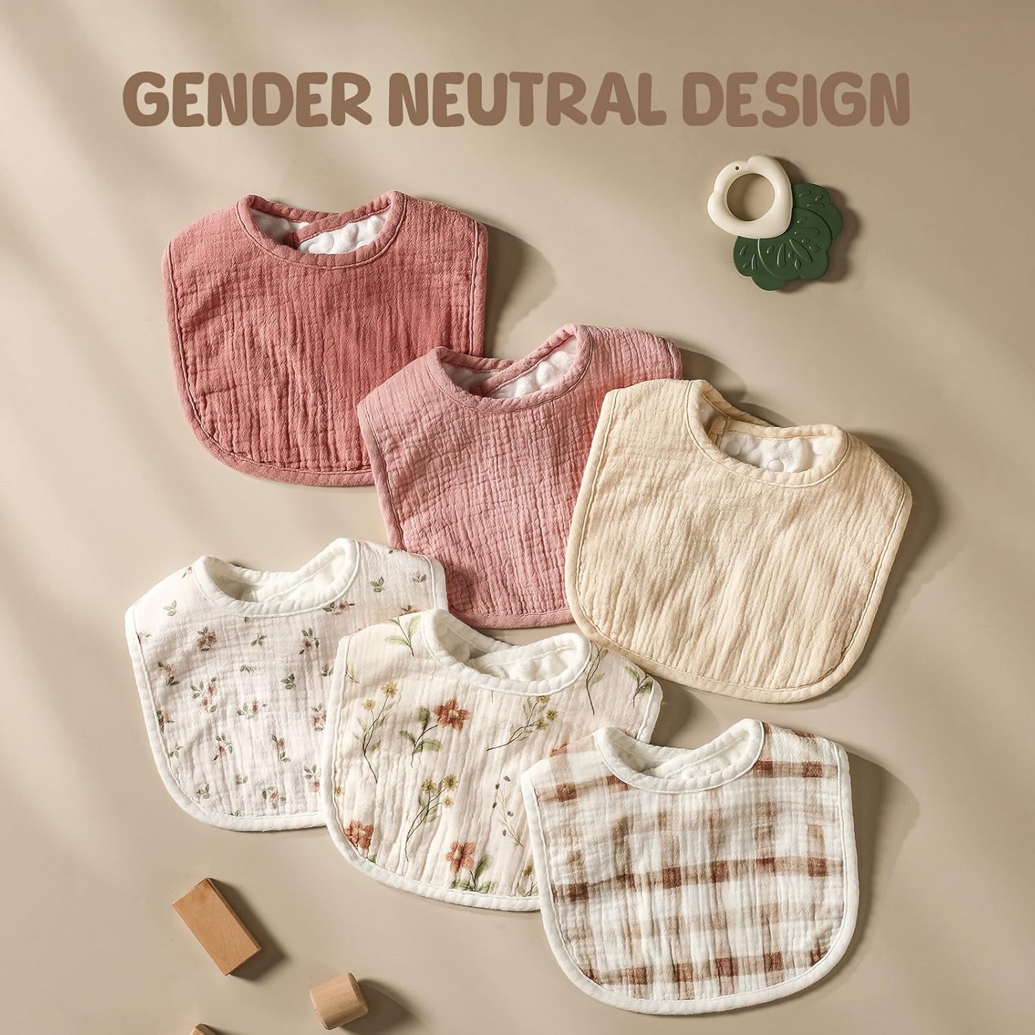 6-Pack Muslin Baby Bibs for Unisex Boys Girls, Cotton Baby Drool Bibs, Drooling and Teething Bibs for Infant