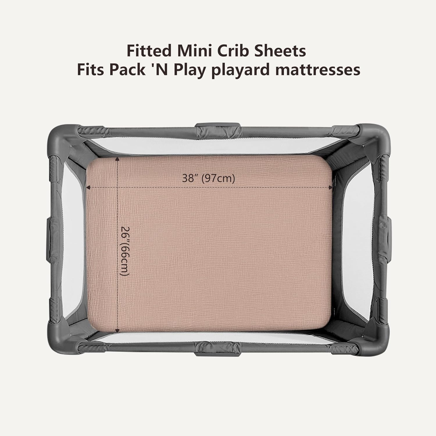 Bearmoss Muslin Mini Crib Sheets for Pack N Play Mattress - 100% Cotton - 38"x24" Soft Breathable Playard Baby Crib Sheets Neutral for Boys Girls - 2 Pack (Pink Star)