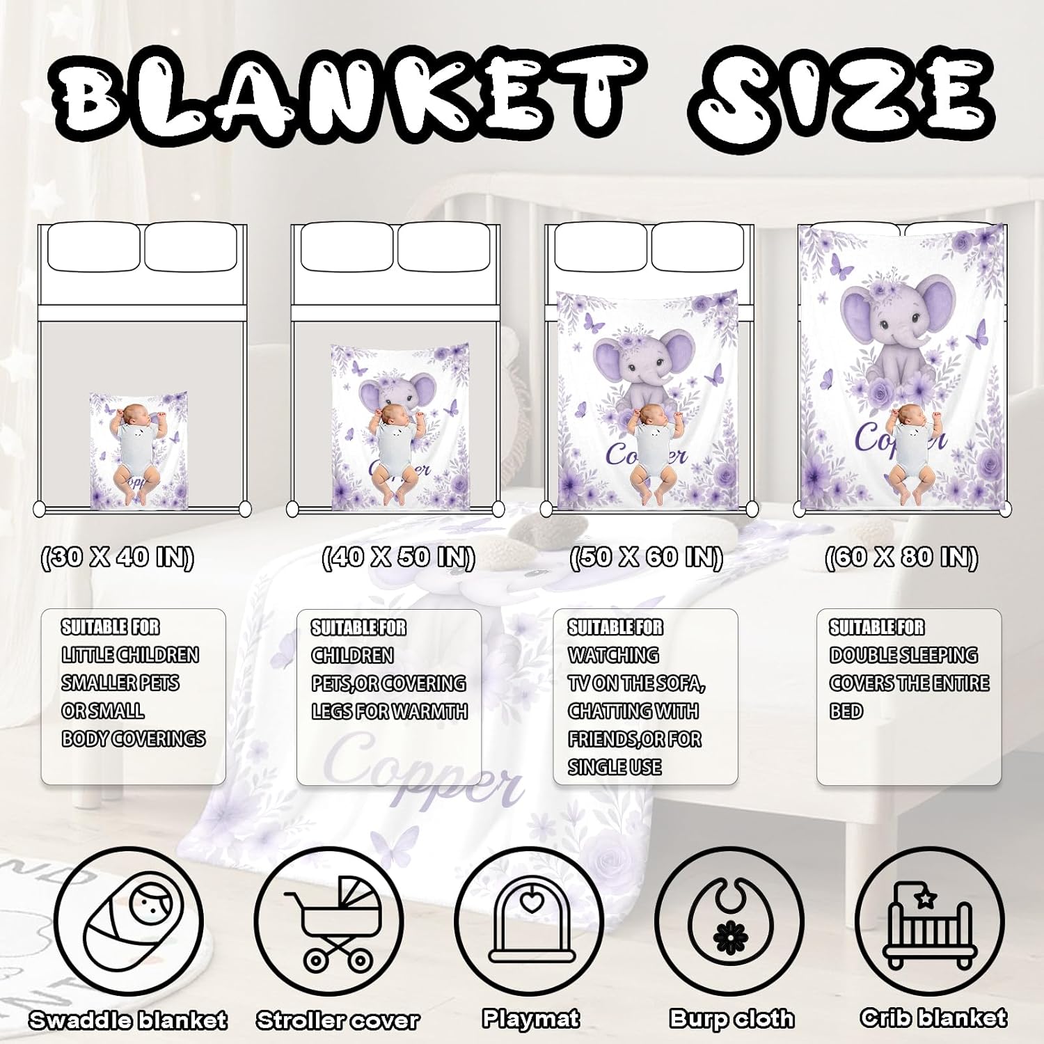 - Multiple Sizes for Every Stage of Babyhood -- From cribs to car seats, choose the perfect size: 30×40" , 40×50" , 50×60", or 60×80". Whether used at home, during naps, or on the go, our baby blankets for boys and girls offer comfort wherever they’re needed. It’s versatile, functional, and fits into every parenting routine or nursery setup.