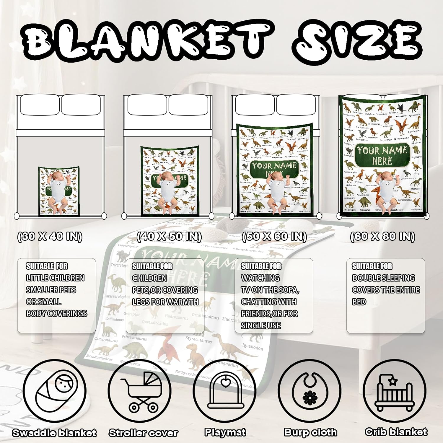 - Multiple Sizes for Every Stage of Babyhood -- From cribs to car seats, choose the perfect size: 30×40" , 40×50" , 50×60", or 60×80". Whether used at home, during naps, or on the go, our baby blankets for boys and girls offer comfort wherever they’re needed. It’s versatile, functional, and fits into every parenting routine or nursery setup.