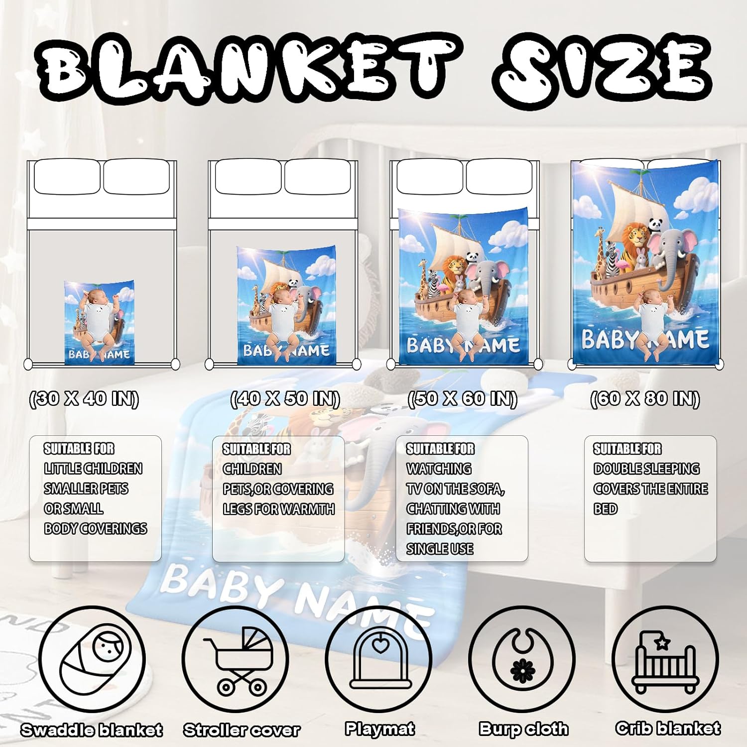 - Multiple Sizes for Every Stage of Babyhood -- From cribs to car seats, choose the perfect size: 30×40" , 40×50" , 50×60", or 60×80". Whether used at home, during naps, or on the go, our baby blankets for boys and girls offer comfort wherever they’re needed. It’s versatile, functional, and fits into every parenting routine or nursery setup.